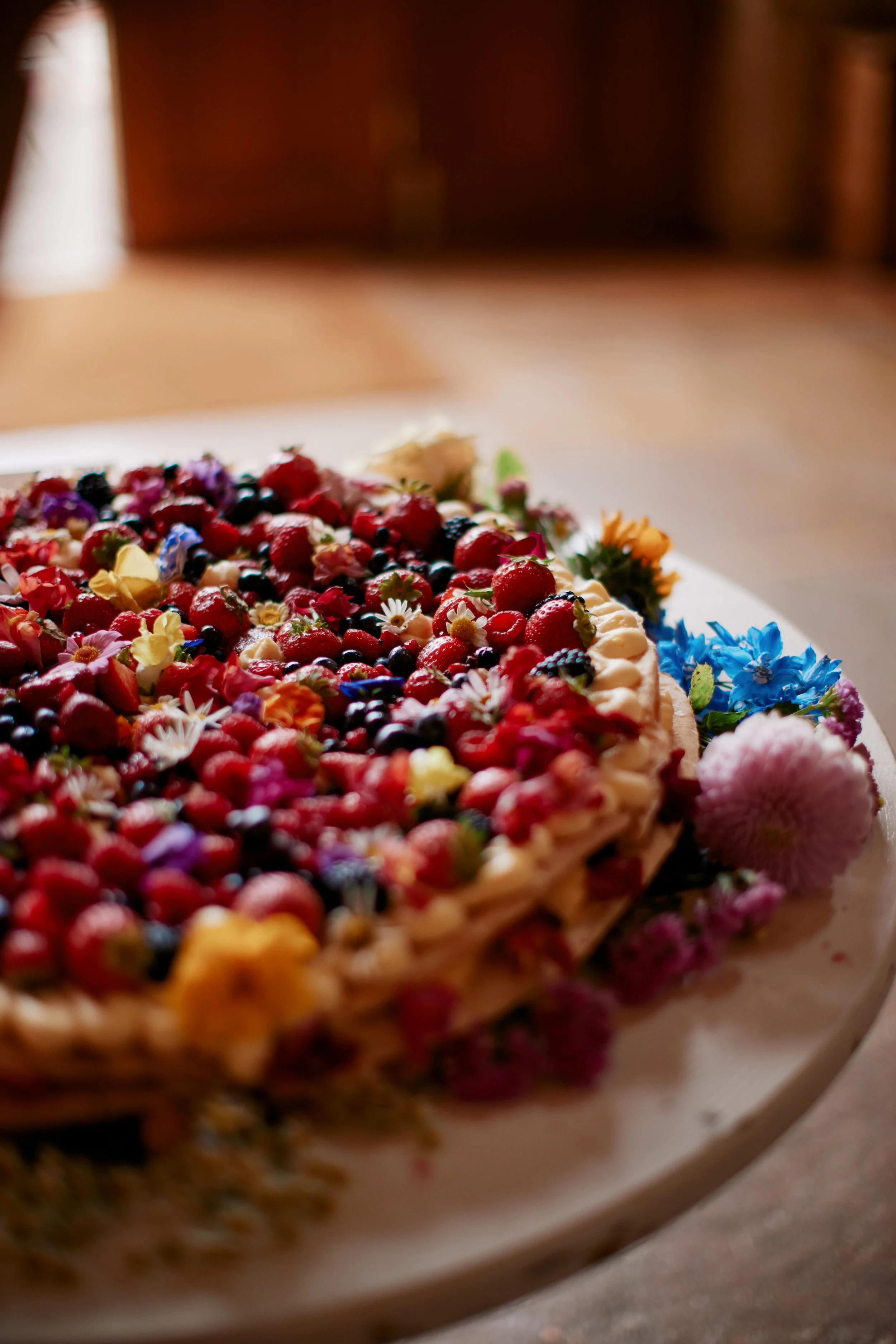 Semi-naked cakes with fresh berries or seasonal flowers