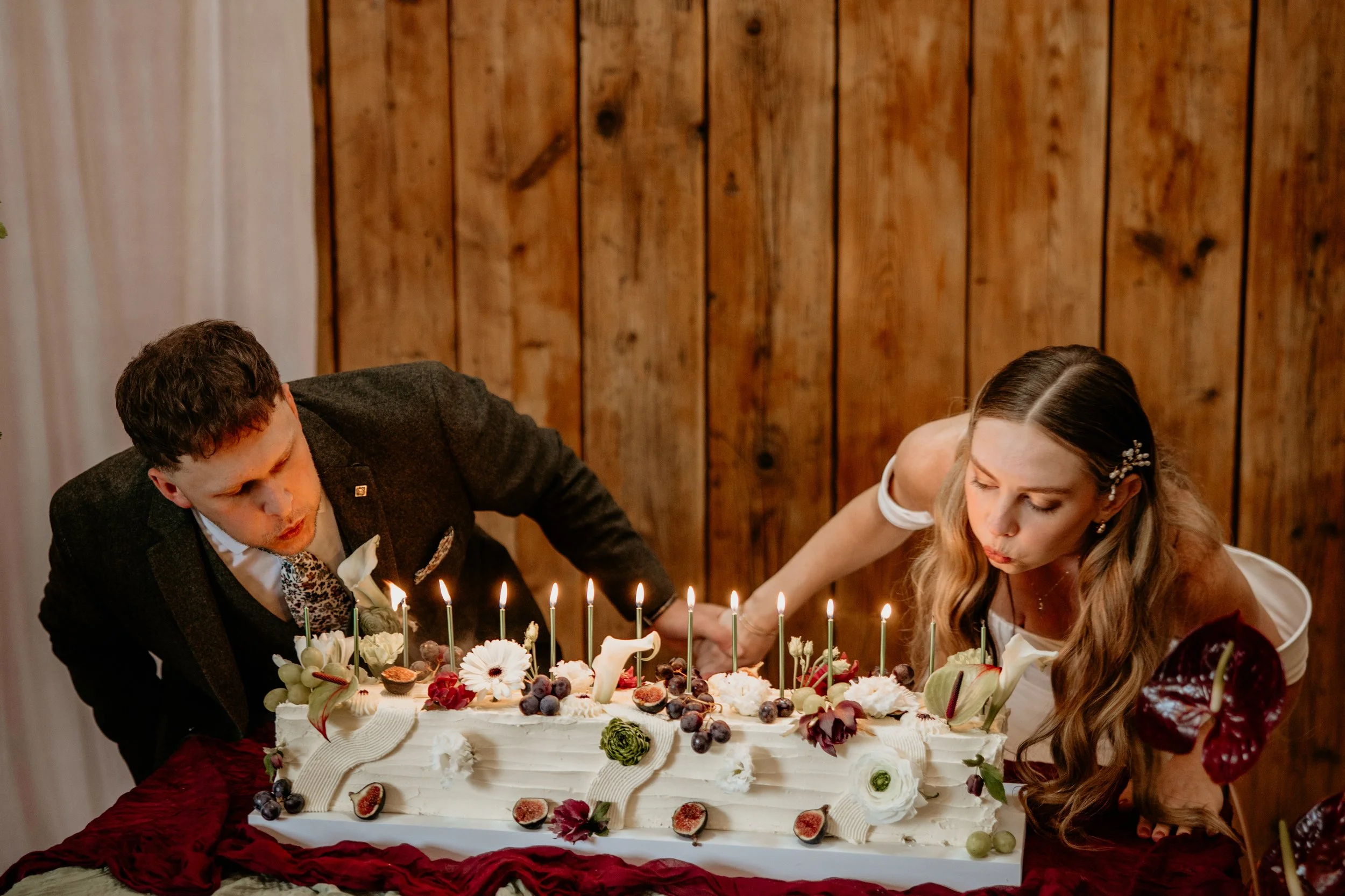 Instead of (or alongside) the classic cake cutting, couples are choosing to add candles to their wedding cake and share a quiet moment together, making a wish before blowing them out. It’s a romantic, intimate gesture that feels especially fitting in a relaxed barn setting.