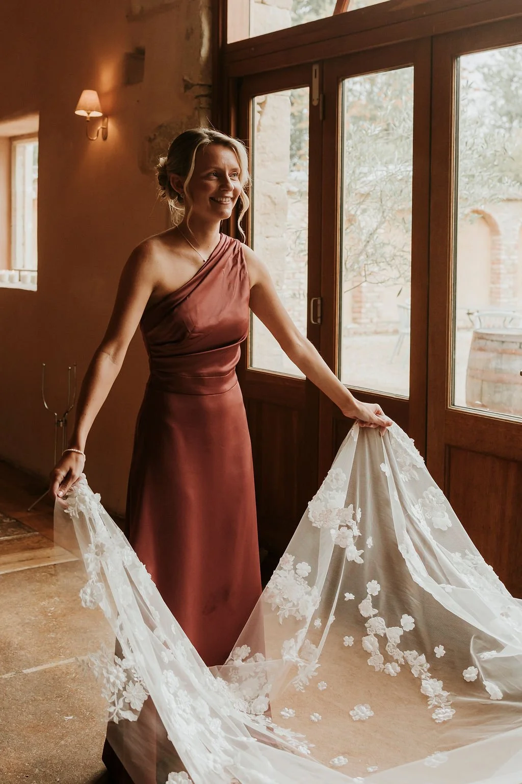 We make sure you’re looking and feeling your best. Dresses are carefully fluffed and arranged so they fall beautifully, bouquets are held in just the right position, and even the small details are taken care of like removing that hairband that somehow always ends up around your wrist. These finishing touches help ensure you look exactly how you imagined when you step into view.