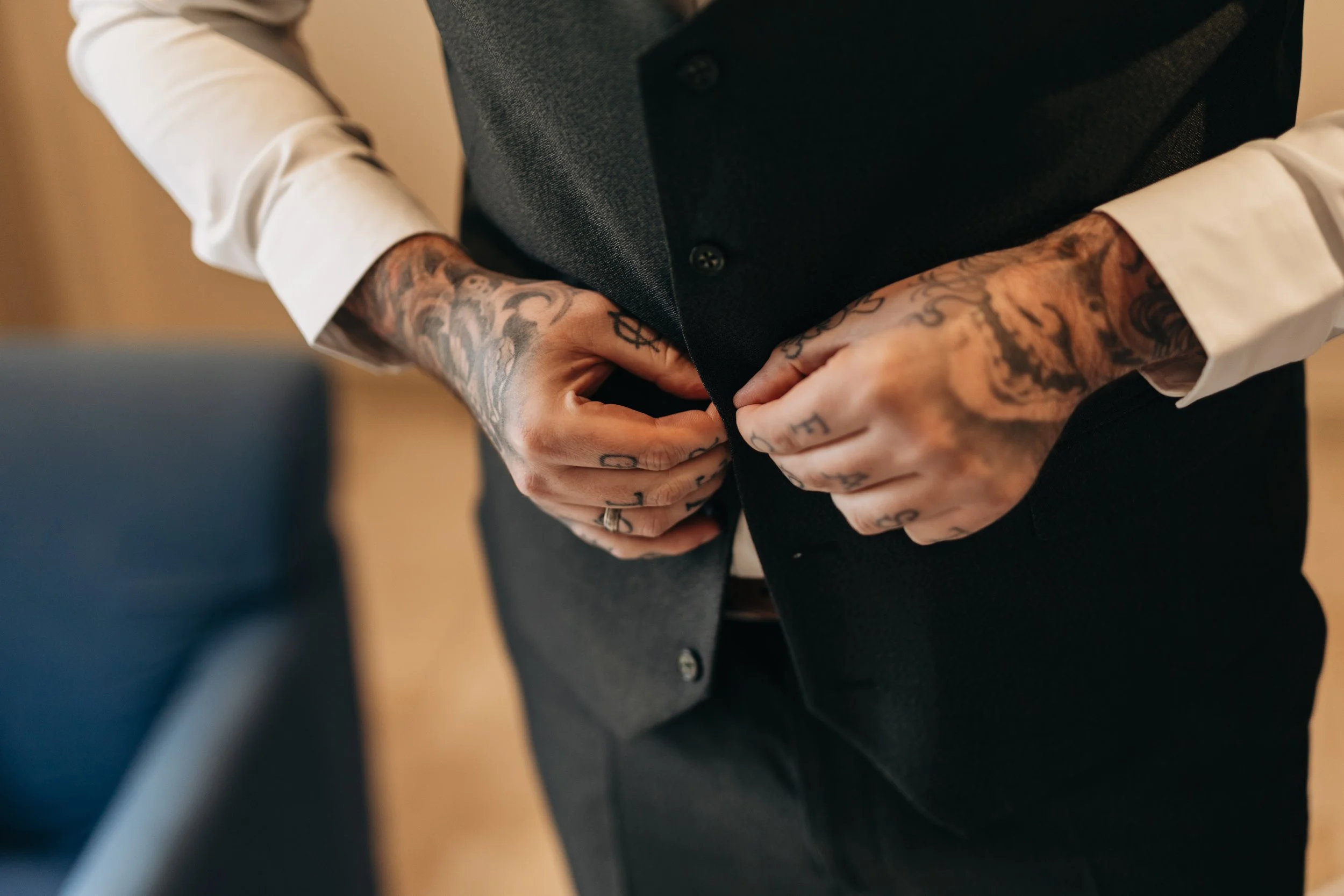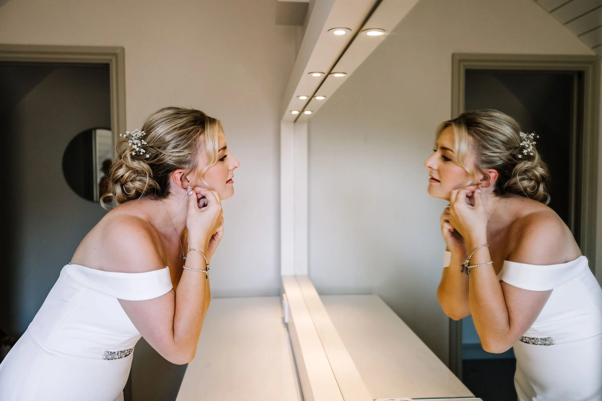 And while the bride is often the focus, we don’t forget about the groom. Our team makes sure he’s ready too, removing labels from new shoes, checking that phones and wallets are out of pockets, and ensuring everything looks neat and polished.